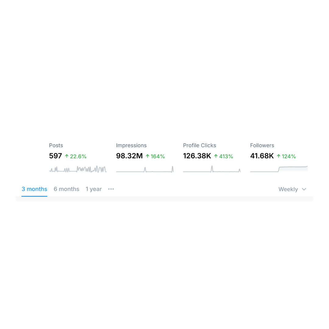 "They are exceptional writers and personal brand strategists who know exactly how to transform personal experiences and expertise into compelling stories. Their content consistently resonated with my audience, with threads going viral and attracting a loyal following. I couldn’t have asked for a better team to amplify my voice online."